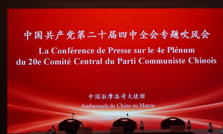 Una conferencia de prensa se celebró el martes 4 de noviembre de 2025 en la Embajada de China en Rabat, dedicada a la cuarta sesión plenaria del 20.º Comité Central del Partido Comunista de China.