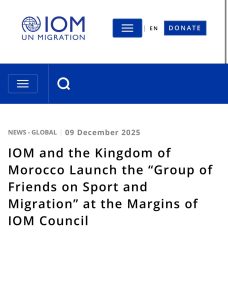 En una dinámica que vuelve a confirmar la posición de vanguardia que ocupa el Reino de Marruecos en materia de innovación diplomática y deportiva dentro del sistema multilateral, la Organización Internacional para las Migraciones (OIM) y el gobierno marroquí anunciaron oficialmente, el martes 9 de diciembre de 2025 en Ginebra, el lanzamiento del “Grupo de Amigos del Deporte y la Migración”. Esta iniciativa pionera busca convertir el deporte en una herramienta estratégica para reforzar la inclusión social, empoderar a los migrantes y mejorar la gobernanza migratoria tanto a nivel nacional como internacional.